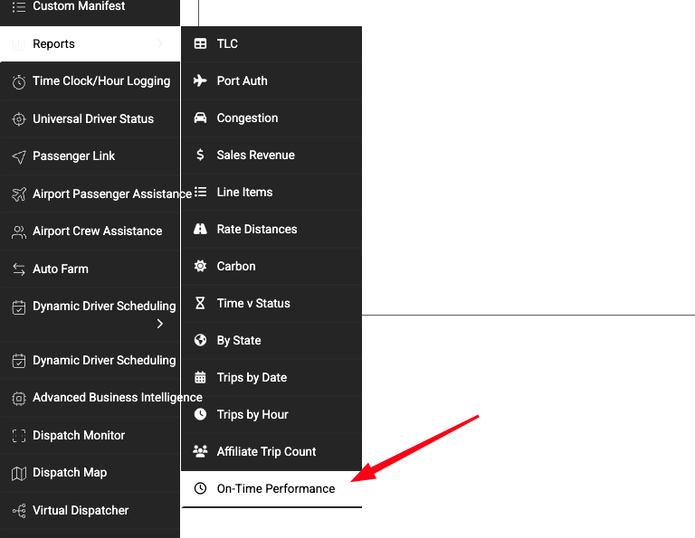 - Navigate to Reports > On-Time Performance in the left sidebar