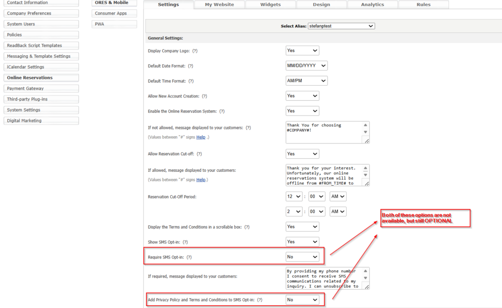- If set to YES, it will not allow guest users to submit bookings if they do not consent to the SMS Opt-In