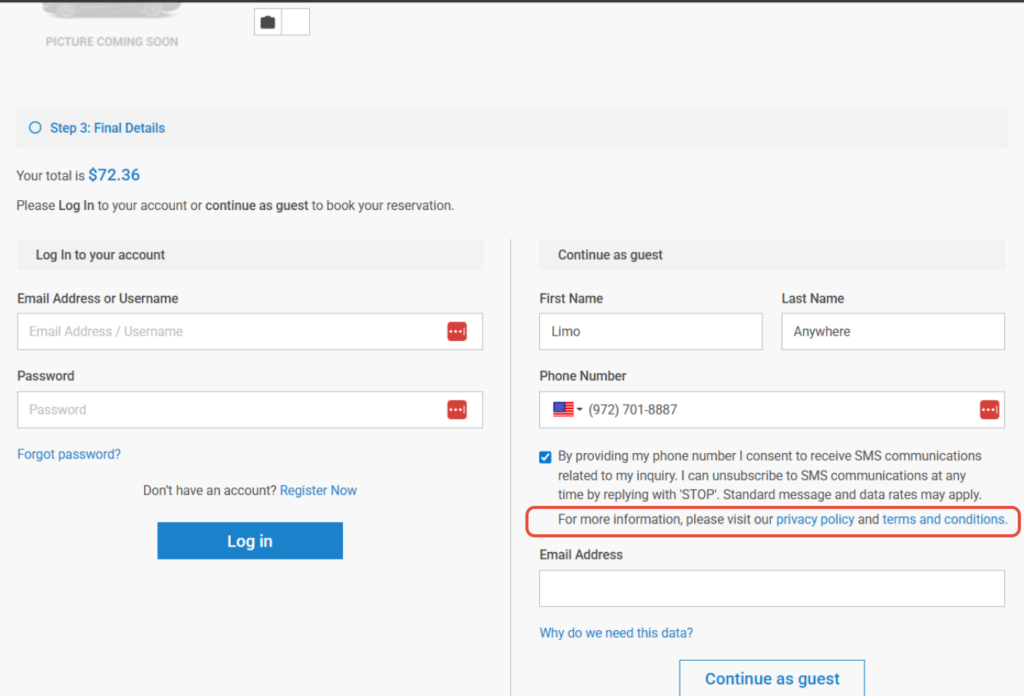 The Limo Anywhere Online Reservation System has introduced the SMS Opt-In option that will make the booking form completely 10DLC compliant.