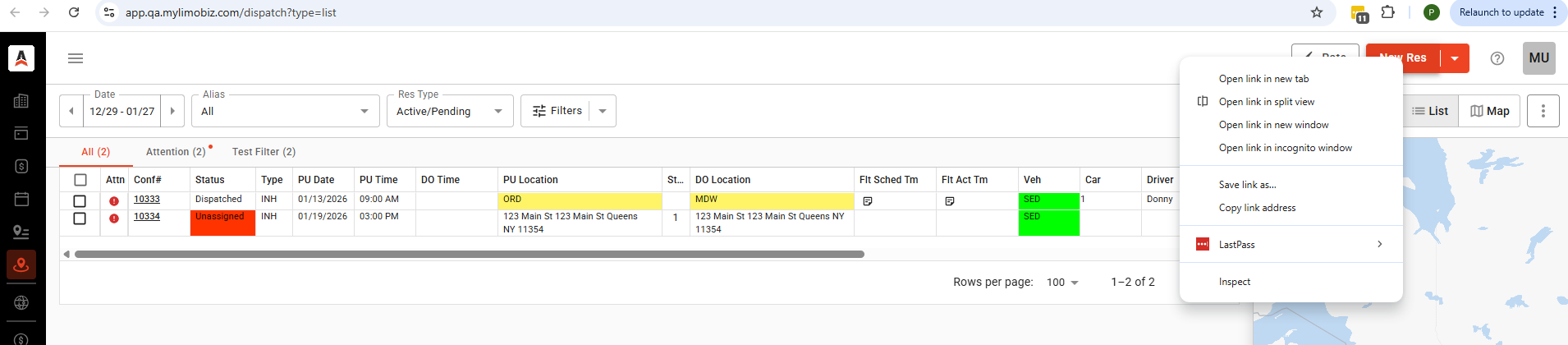 - New Dispatch Improvements – From now on, operators can open New Reservation in a separate tab by right-clicking the New Reservation button and selecting the option to open it in a new tab.