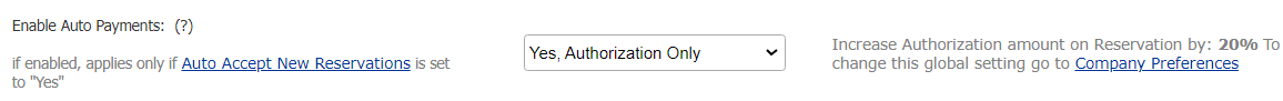 - “Authorization Only” will fully authorize the reservation amount (or as per your company preferences).