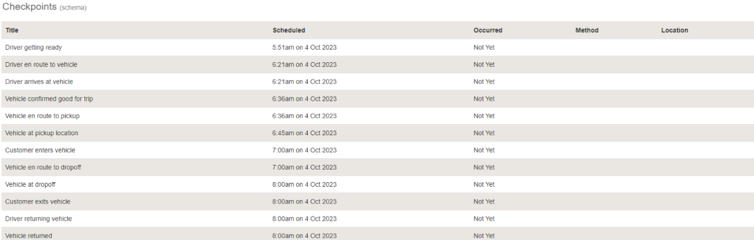 - Driver Confirmation – We can send your company an email to alert you that the driver is up and moving, and change the status of the trip.