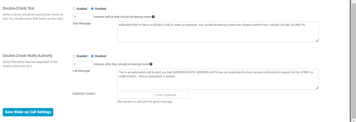 - Double-Check Notify Authority – If a driver does not respond to the double-check text, we will call the authority contact listed. DTMF is used if you have an automated system and must press a number to speak with a live person.