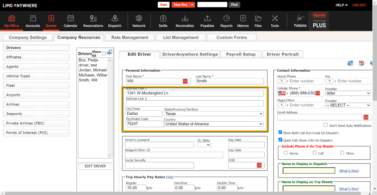 - You will want to navigate to your Drivers Section of LimoAnywhere by clicking on My Office, Company Resources, and Drivers.