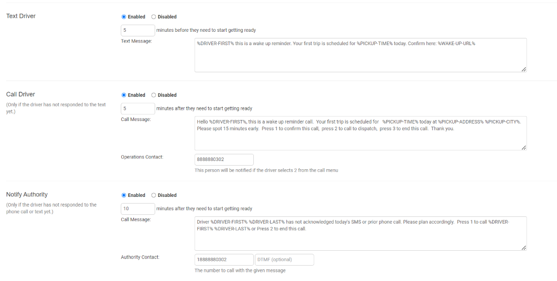 You’ll see we have three different sections – Text Driver, Call Driver, and Notify Authority.