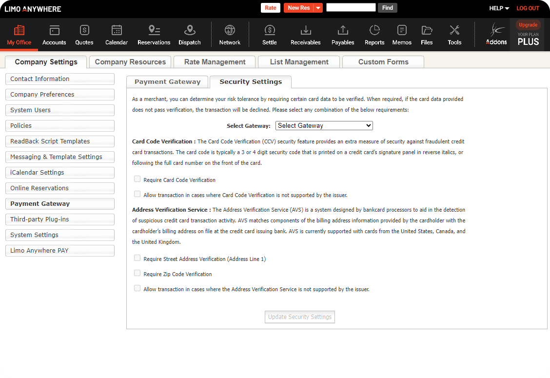 The settings are located at “My Office” -> “Company Settings” -> “Payment Gateway” -> “Security Settings”. Here’s a breakdown of each setting: