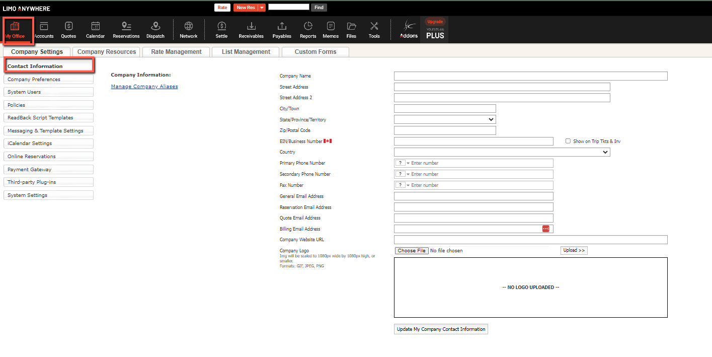 Your company contact information provides essential ways for customers and affiliates to reach you. It’s also used on key documents like confirmations, trip sheets, and invoices, and serves as a reference for managing outgoing communication. Here’s how to manage it within Limo Anywhere