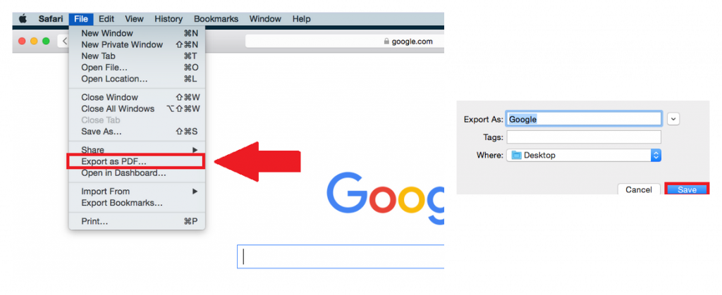 - Click on “File” to open the Safari menu for options