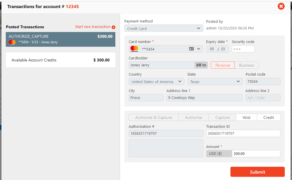 - Enter in the Credit Card info via Start New Transaction/Pay With > Add New Card