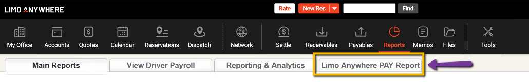 - Click on the ‘Limo Anywhere PAY Report’ tab.