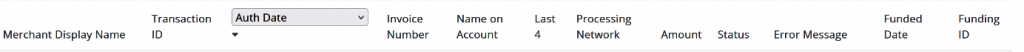- This report allows you to run a Transaction Report from 6 days ago up to the current day. Within this report, you will be able to track all transactions performed within this date range. To access a specific transaction and view all details, click on the blue Transaction ID. See the columns that show on this tab below: