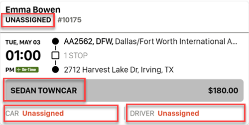 Just tap any of those options right on the job card to quickly change. Each one will take you to their respective screen to search and/or select the status, vehicle type, car or driver you want to update on the reservation.