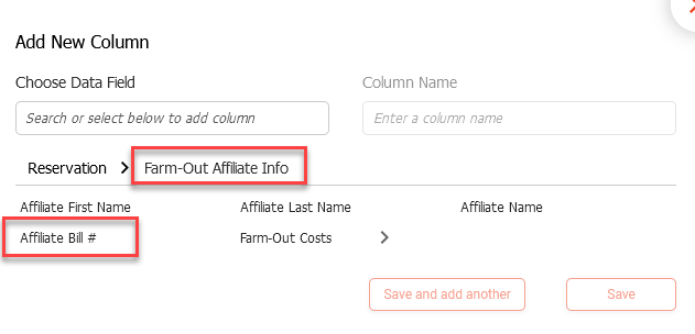 We have added ‘Affiliate Bill #’ as a new column to Reporting and Analytics. You can add this new column in R&A under Reservation>Farm-Out Affiliate.