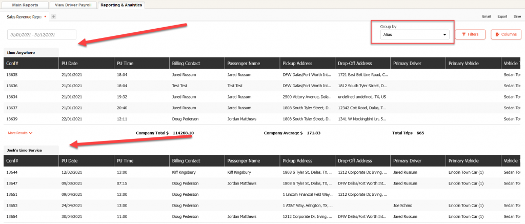 We have added ‘Alias’ to Group By in Reporting and Analytics to allow you to group reservations by ‘Alias’ for a date range.