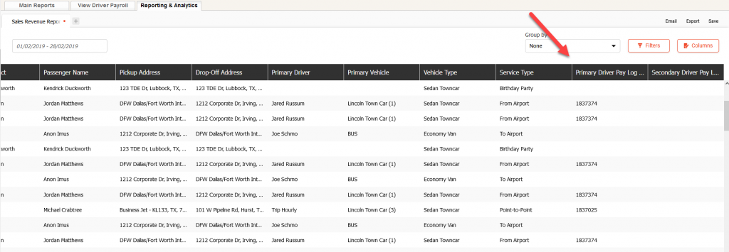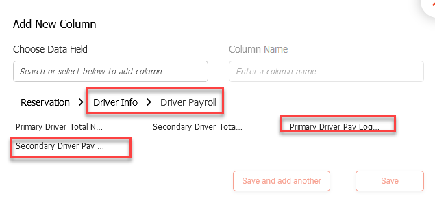 We have added Primary and Secondary Driver Paylog ID as a new column to Reporting and Analytics. You can add this new column in R&A under Reservation>Driver Info>Driver Payroll.
