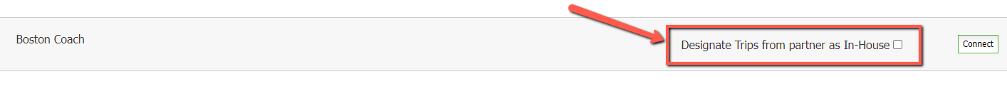 We added the option for operators to designate Partners such as Boston Coach in Partner Network area of LA back office as “In House Partners”. When the checkbox for this option is checked for a Partner, every trip received from that Partner will be marked as “In House” trip type by default. You can turn this option on or off as needed, if it is turned off, all the trips received from that Partner will be marked as “Farm In” trip type by default.