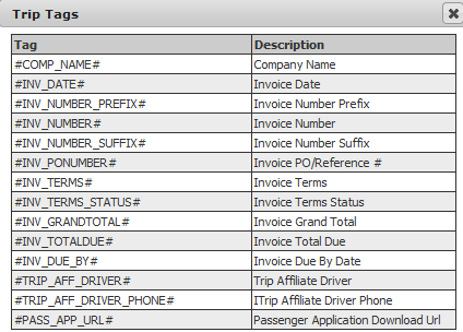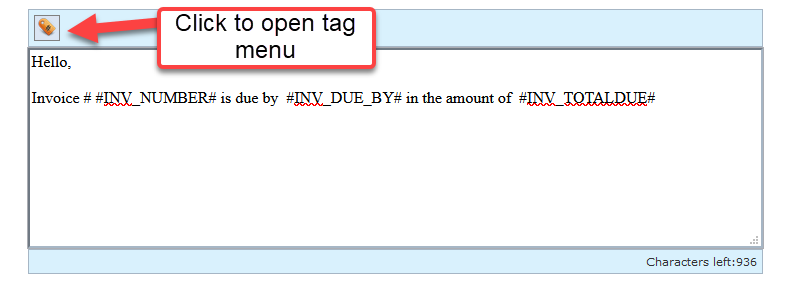- This is the menu of available tags for invoice on SMS