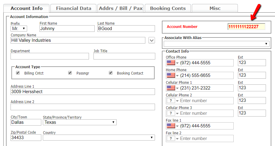 Item 1: When working with a customer account, the default payment method on the account (specified under the Financial Data tab) will be applied to the incoming trip. A credit card can always be supplied with the trip regardless of the default payment method. There is a setting in your system which will enable the requirement of a billing address when a credit card is supplied. Here’s how to disable the setting: