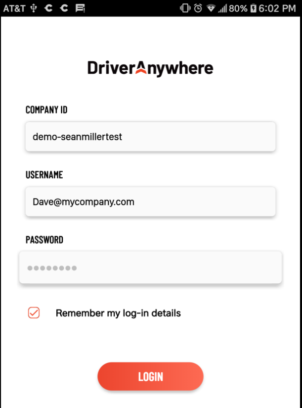 Usernames and Passwords can be created for the DriverAnywhere application in the Driver’s Profile.
