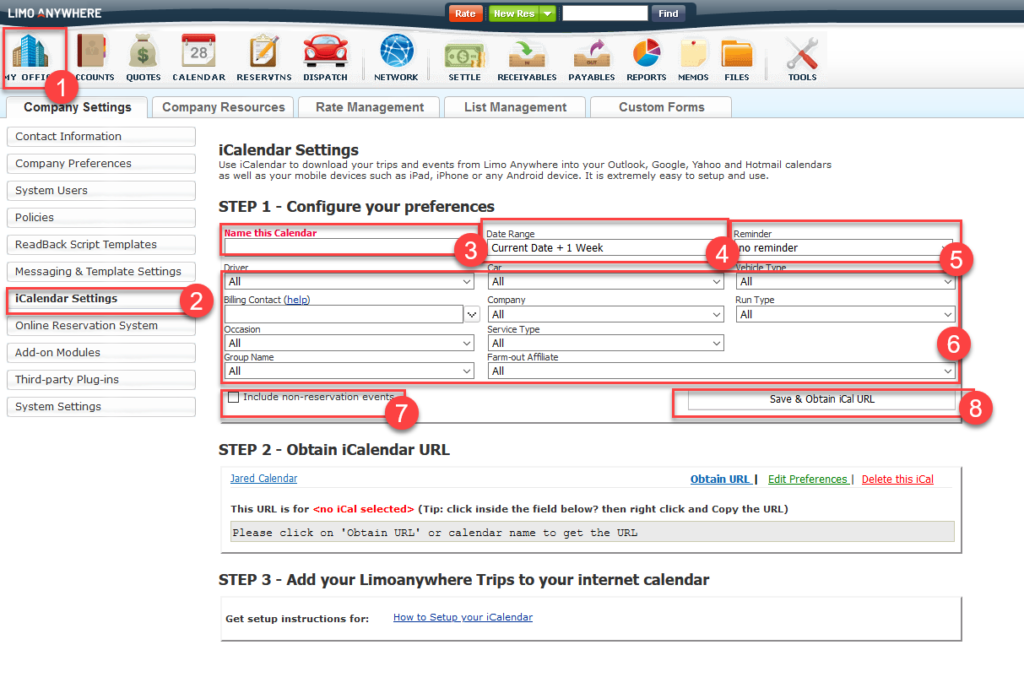 Step 1 – Setting up iCalendar in Limo Anywhere