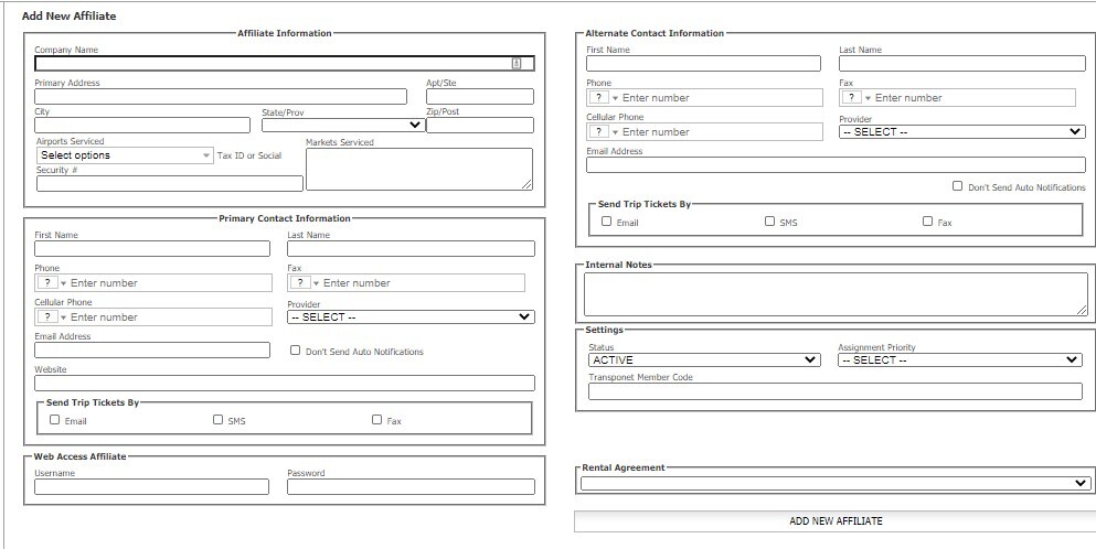 - Type the affiliate company’s name that you are farming-out to in the ‘Affiliate:‘ box.