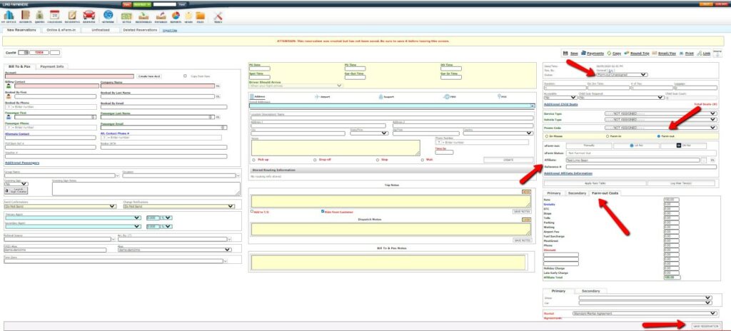 - Select ‘Farm-out‘ as the trip type in the upper right hand corner.