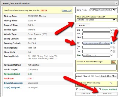 Step 4: Email an Affiliate Trip Sheet