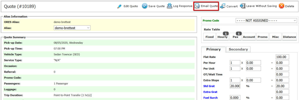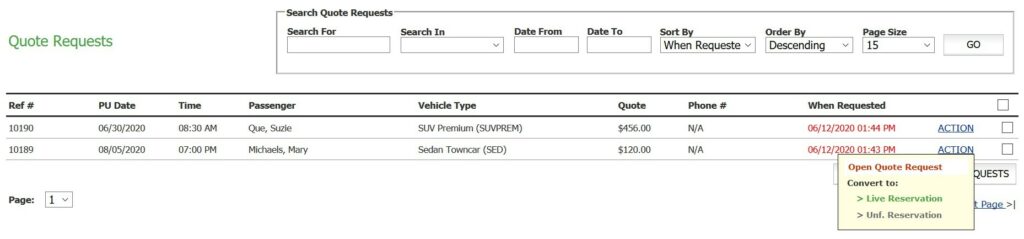 The quote section was designed to handle that time when your customer needs a price for their travel, but isn’t sure if they want to use your service or not. An example of this would be when your customer requests a quote from your Online Reservation System (ORES) for a trip that you have not configured in your system yet or when a potential customer calls your company wanting a price quote for comparison with other companies.
