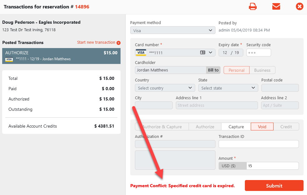 9. Once you are ready to take payment for the reservation selected, click the ‘Submit‘ button at the top right.