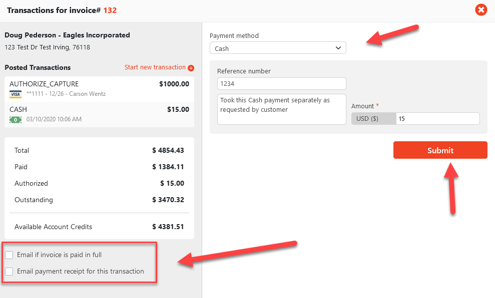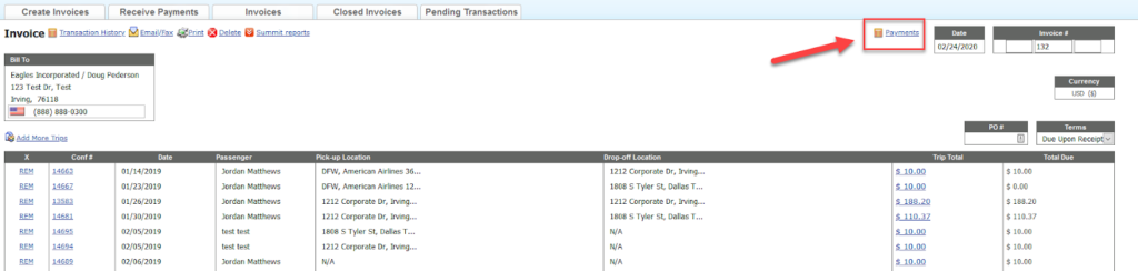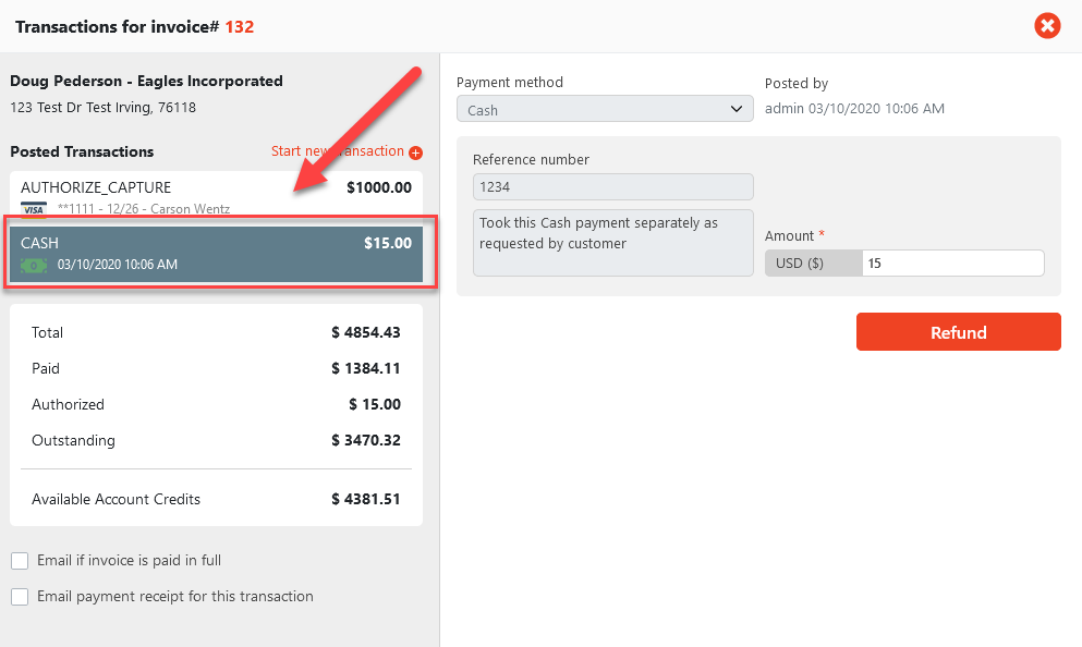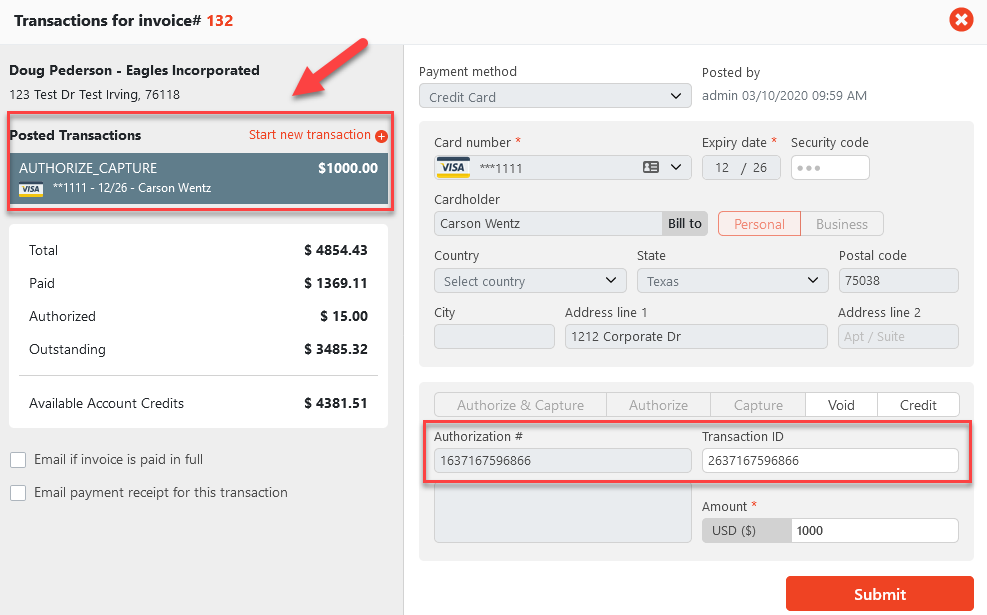 h. Once the transaction has been successfully submitted then you will see the transaction under the ‘Posted Transaction‘ section on each invoice.