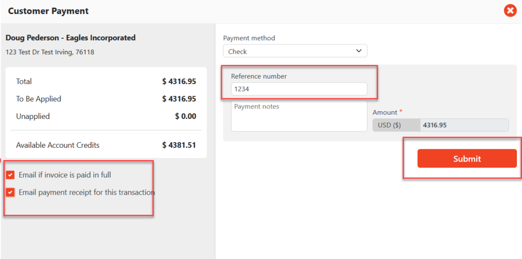6. Repeat Steps 5 and 6 for each invoice you need to receive payment on.