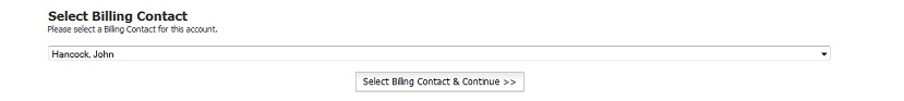 - Click ‘Select Billing Contact and Continue‘ as illustrated below.