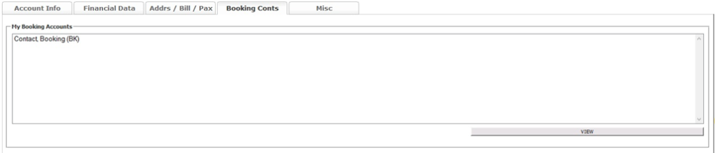 Booking Contacts assigned to the Account are displayed in the My Booking Accounts list.