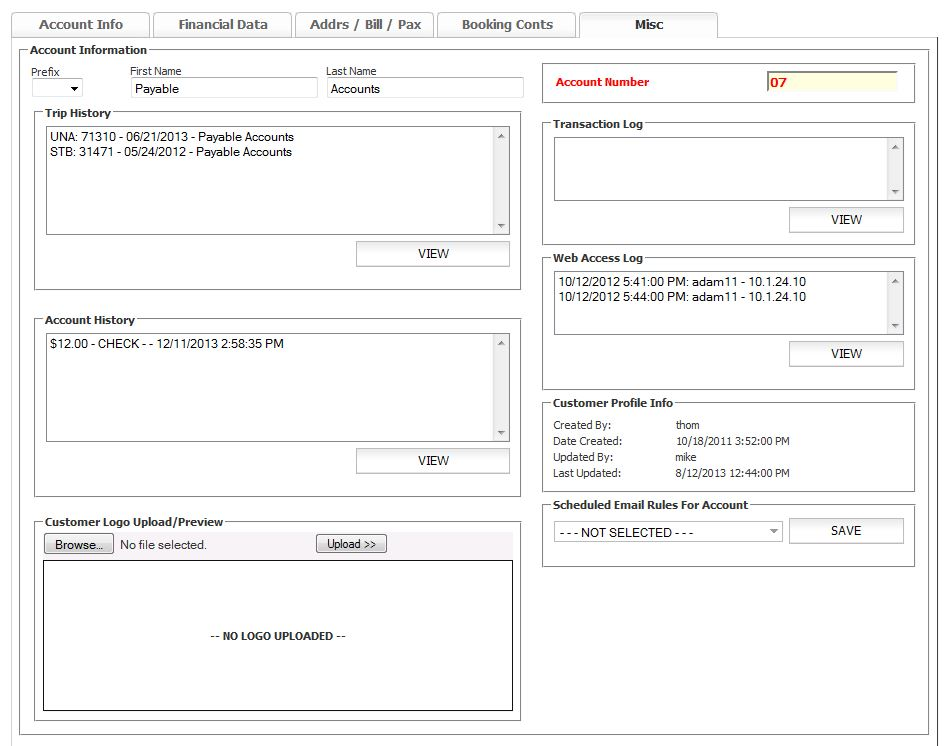 | Historical Revenue Display | Shows the amount of revenue brought in for this account as a billing contact, passenger, or both. |