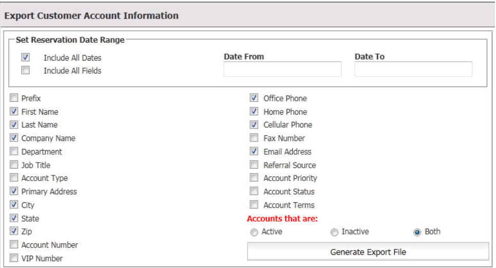 - Select if the data is to be exported from Active, Inactive or Both (all) accounts.