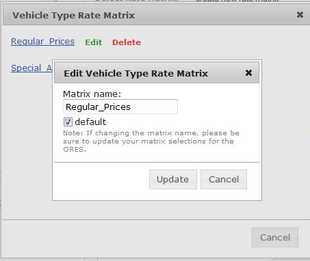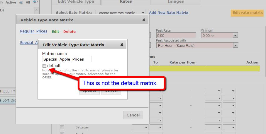 IMPORTANT NOTE: There can only be one Default Rate Matrix, which should be the basic Rates that regular customers (non special pricing customers) would get, you will need to set up ALL of your vehicle types