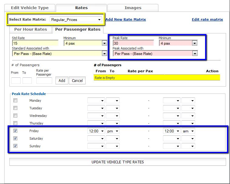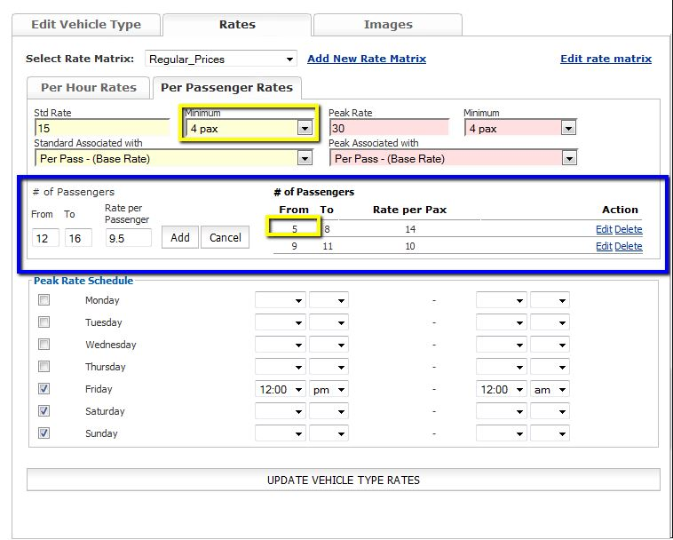 NOTE: Setting up # of Passenger Method will take priority over the peak rate pricing.