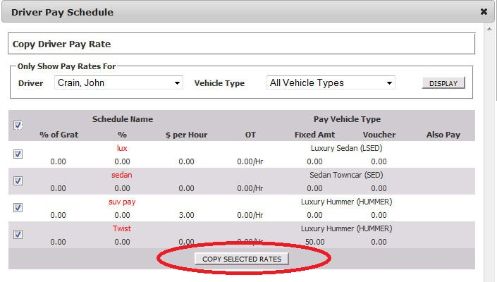 You can quickly set up all of the drivers Pay Schedules that make the same amount by copying from another driver’s profile that has been set up completely.