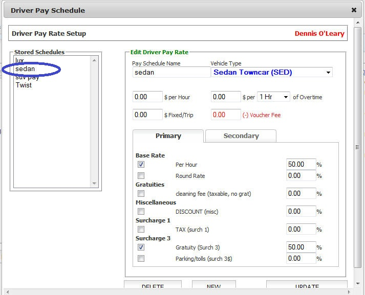 - In the ‘Driver Pay Schedule‘ pop up window.