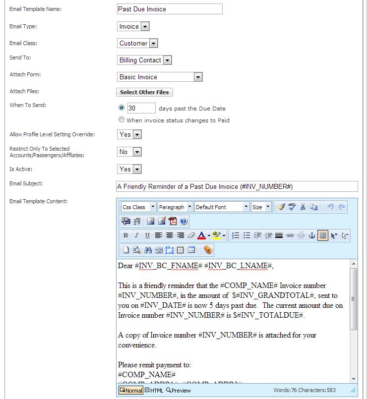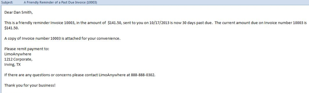 This is a friendly reminder that Invoice #INV_NUMBER#, in the amount of $#INV_GRANDTOTAL#, sent to you on #INV_DATE# is now 30 days past due. The current amount due on Invoice number #INV_NUMBER# is $#INV_TOTALDUE#.