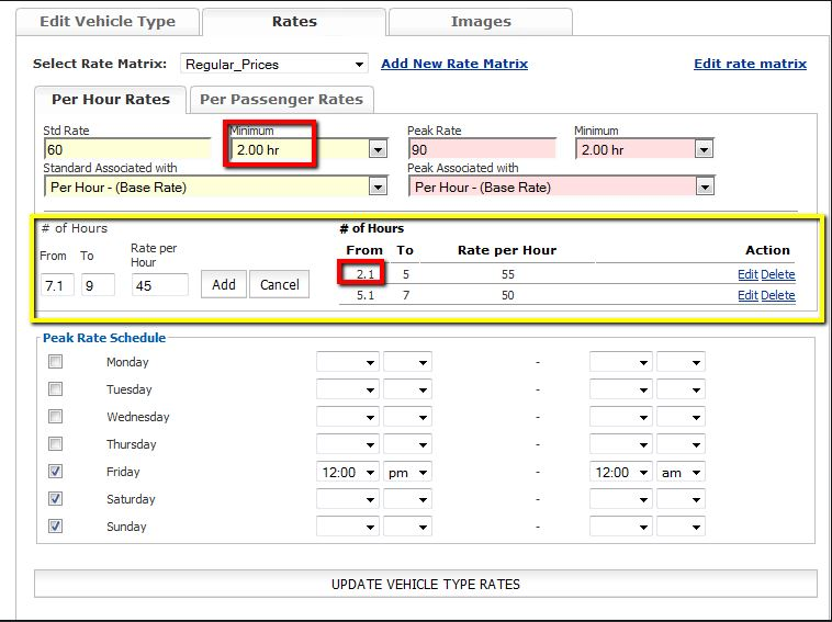 NOTE: Setting up # of Hours Method will take priority over the peak rate pricing.