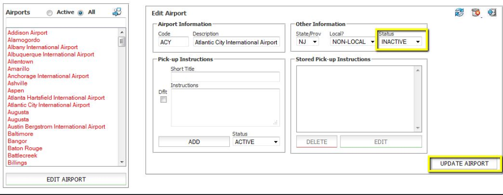 - Click the ‘UPDATE AIRPORT‘ button.