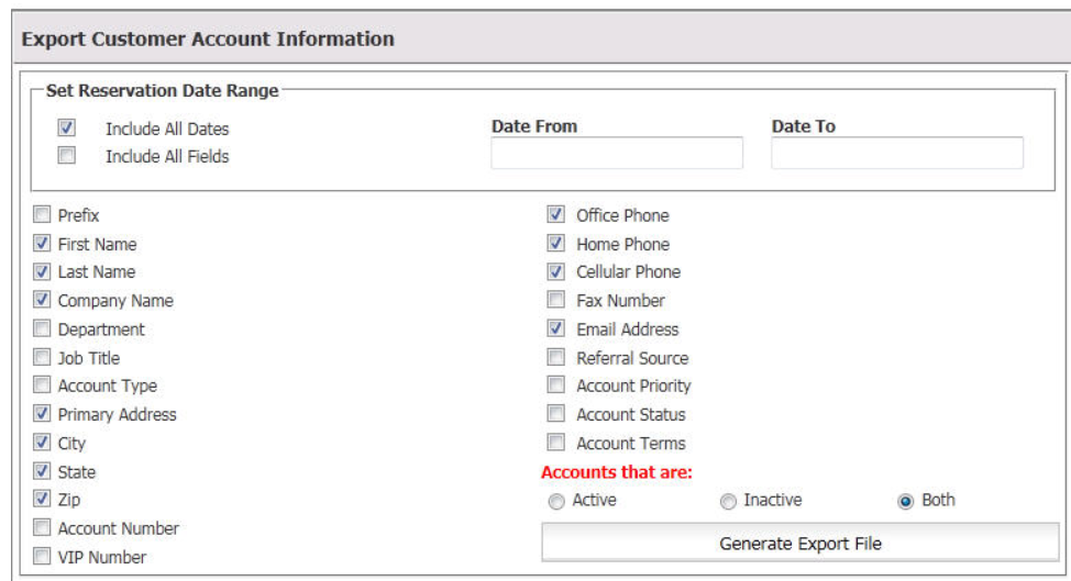- Select if the data is to be exported from Active, Inactive or Both (all) accounts.