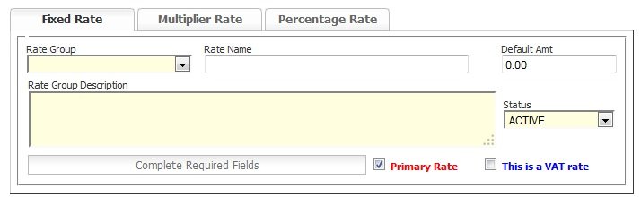 Rate Group Description – When a Rate Group is selected an explanation of how that Rate Group is affects other rates; primarily percentage rates.