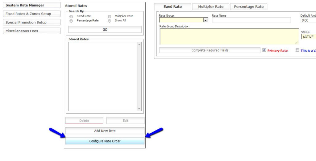 - Click the blue ‘Configure Rate Order’ button beneath the Stored Rate display.