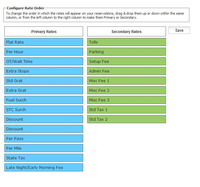 - Drag & drop the different rate labels up or down within the same column, or from the left column to the right column to make the individual rate show on the Primary or Secondary Tab.