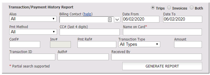 - Select either ‘Trips’ or ‘Invoices’.