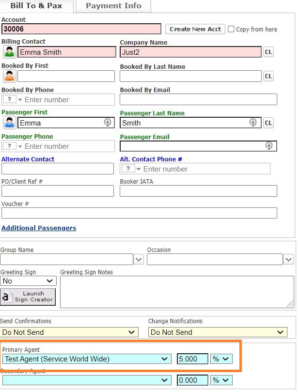 First be sure the agent is entered into the reservation as illustrated below (highlighted orange).