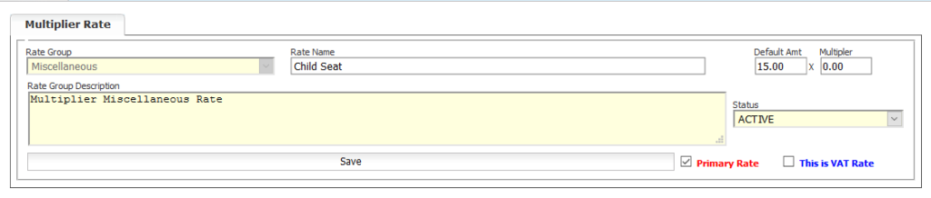 - Remove the check on the box labeled ‘Primary Rate’ if you would like this rate field to be stored on the ‘Secondary Tab’ in reservations/settlement screen.