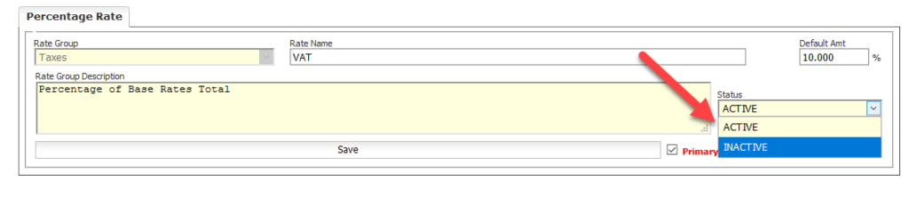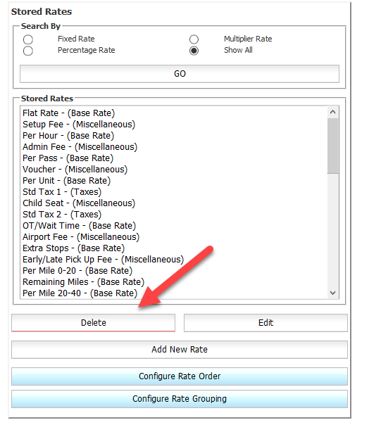NOTE: Rates can only be deleted complete out of the system when they have not been used other wise the rate that you are deleting will automatically be set to inactive.